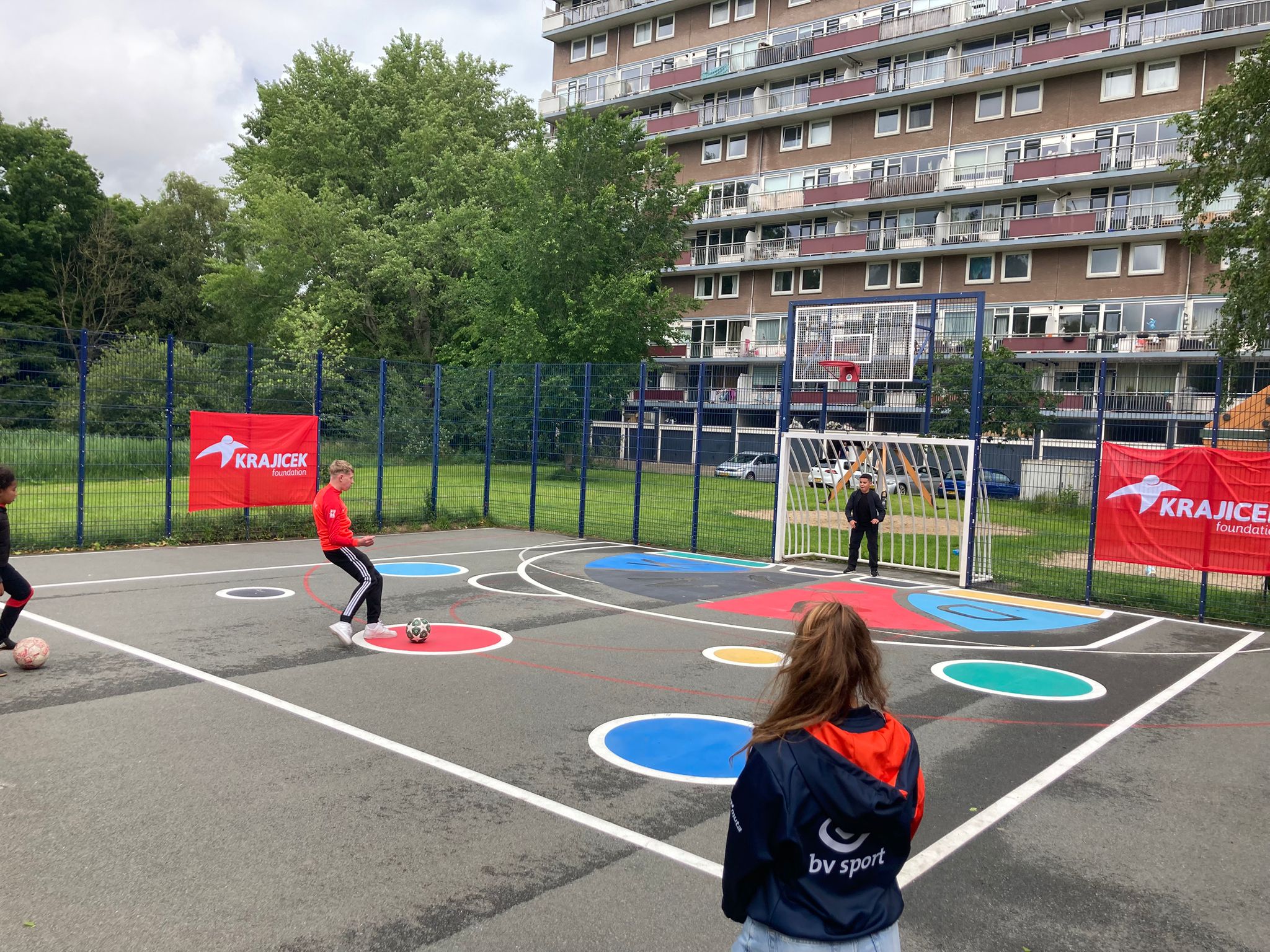 BV Sport en jongerenwerk Amaryllis organiseren in samenwerking met vier Krajicek Scholarshippers de wekelijkse sport- en spelactiviteiten. Zo hebben kinderen uit de wijk ook na deze opening een plek waar zij regelmatig en onbezorgd kunnen sporten en spelen.