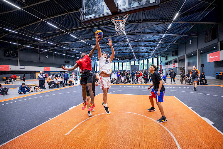 “Hé, gooi die bal! Ik sta vrij!” klonk enthousiast vanaf een van de 3x3-basketbalvelden tijdens de zesde editie van de Krajicek Tournament Day. Het geroep van kinderen, het gedribbel van basketballen en urban muziek vulden afgelopen zondag de sporthal in Rotterdam Ahoy.