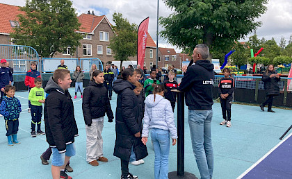 Een win-win situatie: de sportleiders kunnen met de helpende handen extra activiteiten aanbieden in het buitenspeelseizoen en de jongeren ervaren hoe het is om mee te helpen op een Krajicek Playground.